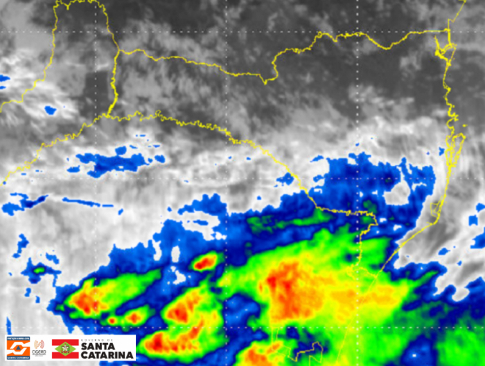 A frente fria concentrada no Rio Grande do Sul avançará sobre o Sul de Santa Catarina neste domingo (12), ganhando força com a formação de uma nova frente fria. Associada a um sistema de baixa pressão e reforçada pelo fluxo de calor e umidade da região amazônica, a instabilidade provocará chuvas e temporais no Sul catarinense.