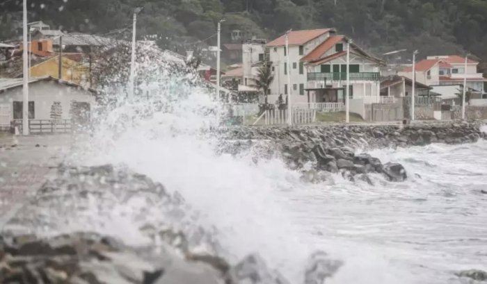 Com a intensificação e mudança na direção dos ventos, o mar fica agitado, principalmente entre o Litoral Sul e a Grande Florianópolis. São esperadas ondas entre 2,0 e 2,5 metros, podendo atingir até 3,0 metros em alto-mar.