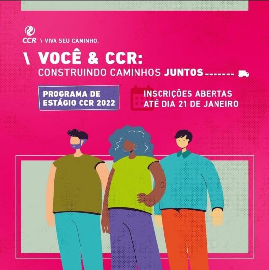 As inscrições vão até 21 de janeiro de 2022. Para estas e mais informações basta acessar: https://oportunidades.eureca.me/oportunidade/programa-de-estagio-ccr-2022.