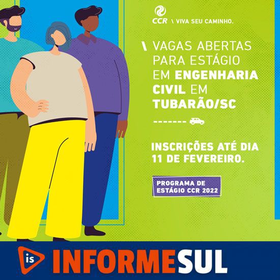 O Grupo CCR prorrogou as inscrições para os interessados em participar do Programa de Estágio 2022 da companhia. O novo prazo, agora, vai até a próxima sexta (11), através do link https://form.typeform.com/to/bSVxsdhA . Qualquer estudante cursando qualquer curso superior em qualquer instituição de ensino pode participar, sem restrições.