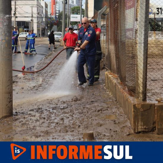 Os trabalhos são conduzidos pela secretaria de Serviços Públicos, Corpo de Bombeiros Militar, empresa Sanitary e Racli Limpeza Urbana.