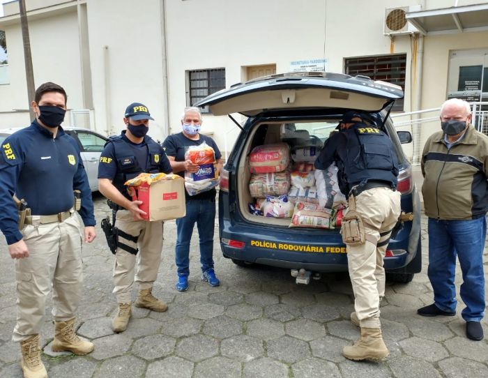 A Rede Cáritas Diocesana, em Tubarão, que trabalha na defesa dos direitos humanos de excluídos e promove regularmente alimentação coletiva para pessoas carentes foi uma das beneficiadas. Foto: PRF Aproximadamente uma tonelada de alimentos não perecíveis foram entregues para duas instituições assistenciais localizadas no sul de SC. Os produtos foram arrecadados na campanha “Estrada Solidária”, realizada pela Polícia Rodoviária Federal (PRF).