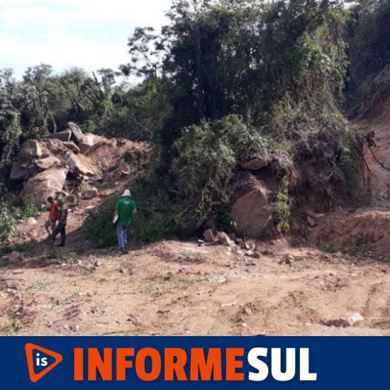 A situação supostamente irregular foi vistoriada pela Flama no último fim de semana. Foto: PML A Justiça Federal de Santa Catarina, por meio de decisão liminar proferida nesta segunda-feira (24/01), acolheu parcialmente os pedidos de tutela de urgência formulados pela Fundação Lagunense do Meio Ambiente (FLAMA) em ação civil pública ajuizada na última sexta-feira (21/01) contra os responsáveis por promoverem a atividade de mineração (lavra de blocos de rochas graníticas) e a supressão de vegetação nativa sem autorização do órgão ambiental competente, na localidade de Morro Grande, Município de Laguna.