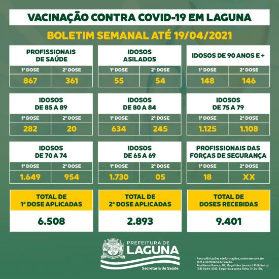Totalizando 9.401 mil doses recebidas do Ministério da Saúde, entre trabalhadores da Saúde, profissionais das forças de segurança e idosos de 90 até 66 anos.