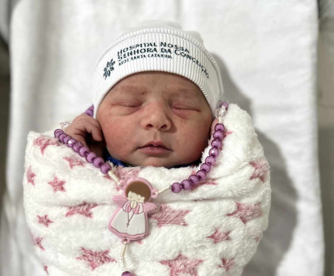 No Hospital Nossa Senhora da Conceição, em Tubarão, o primeiro bebê do ano a nascer foi uma menina chamada Lavínia. Filha de Waleska e Rodrigo, ela nasceu de cesariana às 10h31 do dia 1º de janeiro de 2025, pesando 4,166 kg e medindo 50 cm.