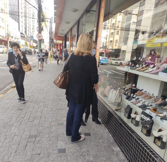 O uso de máscaras e de álcool em gel, assim como o distanciamento, passaram a fazer parte da rotina diária dos lojistas, funcionários e clientes. Foto: Priscila Loch As lojas de Tubarão funcionarão novamente em horário estendido hoje. A expectativa da Câmara de Dirigentes Lojistas para o Dia D dos Namorados é de incremento de aproximadamente 5% nas vendas em comparação ao mesmo período do ano passado.