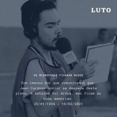 A imprensa de Tubarão e região lamenta pela morte ainda prematura, do jovem Jean Cardoso Júnior, 27 anos. Apresentou programas esportivos e foi repórter de campo, nas Rádios Santa Catarina AM e Bandeirantes 1090. Colegas desmontram nas redes sociais o carinho que tinham pelo "pequeno gafanhoto", como era chamado pelos colegas.