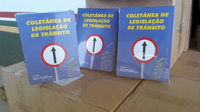 Coronel da reserva, Sérgio de Bona Portão, autor e editor, fez a doação de uma coletânea de Legislação de Trânsito, é 16ª edição.