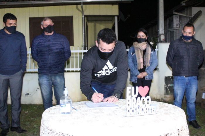 A ordem de serviço no bairro São Basílio foi assinado com a comunidade. Foto: Divulgação O bairro São Basílio em Braço do Norte, recebeu ontem a ordem de serviço para a rua Manoel Antônio Machado, do Calhamaço de Obras. A empresa responsável pela obra é a JR Construções, de Içara e o investimento, com recursos próprios do Município, é de mais de R$ 93 mil.