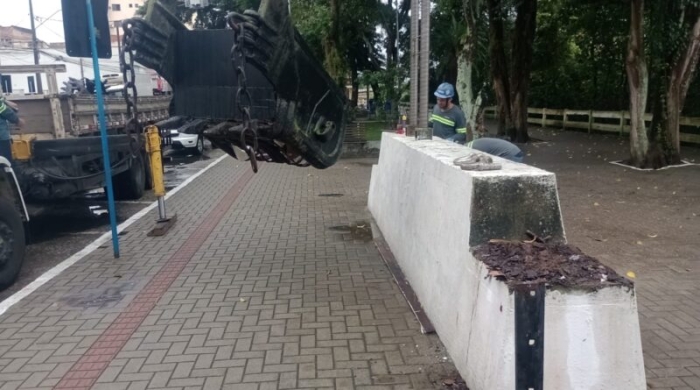 Comunicação Prefeitura de Tubarão A Prefeitura de Tubarão, em colaboração com a Secretaria de Proteção e Defesa Civil, a Associação Regional dos Engenheiros, o Comitê da Bacia Hidrográfica do Rio Tubarão e a Tubarão Saneamento, deu início à restauração do Monumento da Praça Orlando Francalacci, que celebra a memória da tragédia provocada pela enchente de 1974. Na manhã desta quarta-feira (29), as peças metálicas que compõem o monumento foram retiradas para recuperação na Oficina da Ferrovia Tereza Cristina.