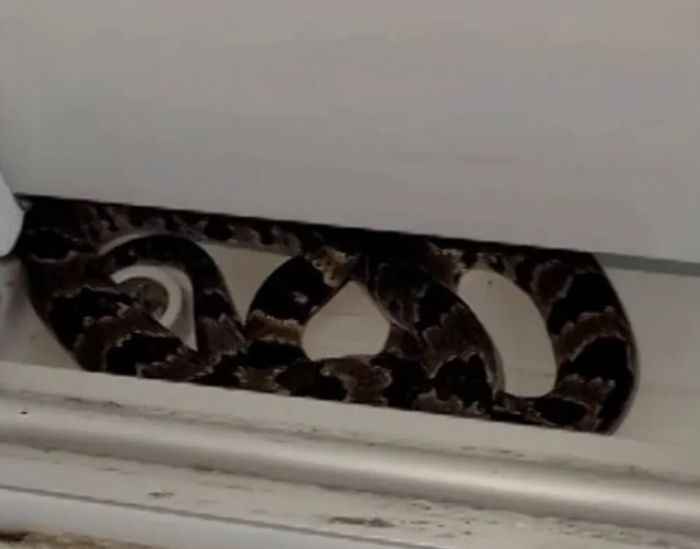 Cobra foi encontrada em vão de porta de correr — Foto: Christian Raboch/ Reprodução