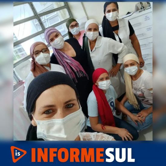 As profissionais da Policlínica Central, além da Secretária de Saúde, Graciela Wiemes Ribeiros, vestiram lenços como forma de incentivo a Joana, que está em tratamento de um Câncer de Mama. Para a profissional da saúde, que encara de frente a doença, receber esse tipo de carinho é um incentivo e tanto na caminhada rumo a cura.