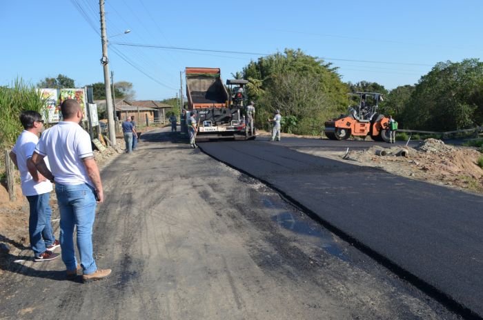 A pavimentação da rua Tenente João Luiz Maus é executada pela Alfa Pavimentadora. O investimento total é de R$ 5.758.231,85.