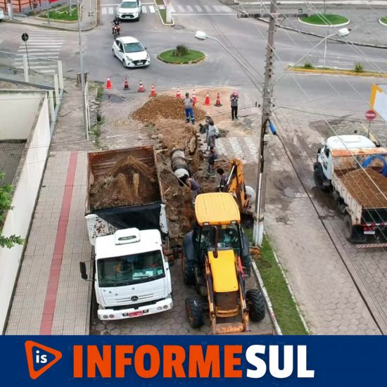 A obra totaliza investimentos do Governo do Estado de R$ 2.798.888,77. Foto: PML Desde a última semana, a segunda etapa de pavimentação asfáltica da Avenida Colombo Salles, que liga o Laguna Internacional ao Centro Histórico, está sendo executada. Até o momento, equipes trabalham na construção e substituição da drenagem pluvial da via. A finalidade é acabar com os frequentes alagamentos causados pela chuva.