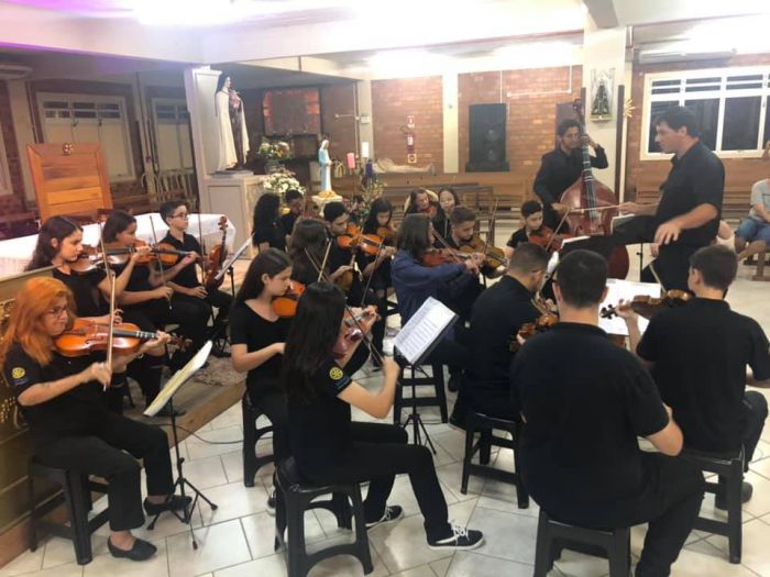 O objetivo é resgatar músicas raízes que fizeram parte da história de muitas pessoas. Foto: Arquivo A Orquestra Santa Teresinha, projeto social da Paróquia do Bairro Passagem, de Tubarão, realizará no dia 31 deste mês, próxima terça, às 19h30min, o concerto anual dos alunos. Neste ano, o repertório foi focado no sertanejo raiz, unindo a linguagem da música erudita com a linguagem da música sertaneja.
