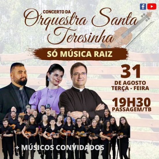 A orquestra será acompanhada em algumas músicas pelos Padres Edison e Judá Gabriel, além da cantora Débora Faustino e músicos convidados. Foto: Divulgação A Orquestra Santa Teresinha, projeto social da Paróquia do Bairro Passagem, realizará hoje às 19h30min, o concerto anual dos alunos. Neste ano, o repertório foi focado no sertanejo raiz, unindo a linguagem da música erudita com a linguagem da música sertaneja.