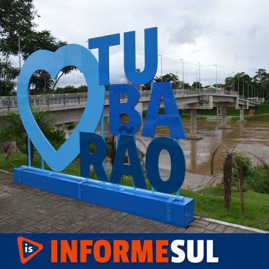 Tubarão ganhou nesta quarta-feira (16) um painel com letras grandes revestidas de PVC com a mensagem “Amo Tubarão” simbolizada em um coração gigante