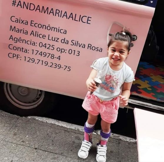 A família de Maria Alice precisa de ajuda para dar continuidade ao tratamento, cujos custos são bastante altos. A menina precisa de sessões frequentes de fisioterapia e fonoaudiologia, além de quatro módulos por ano de Therasuit – terapia que utiliza equipamentos e técnicas especializadas na reabilitação de crianças e adultos com desordens neuromotoras.