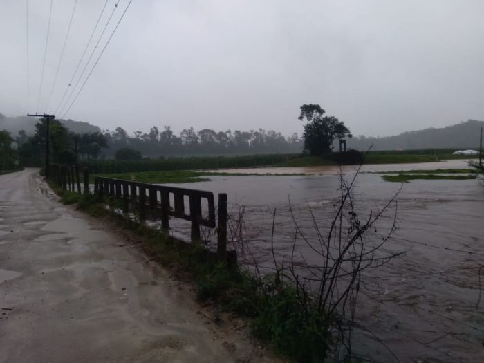 Entre segunda e terça-feira, em 24 horas choveu 199 milímetros na cidade, segundo a Defesa Civil. Durante todo o mês de outubro, a média na região é de 150 milímetros de chuva, conforme a Epagri/Ciram, órgão que monitora as condições climáticas no estado.