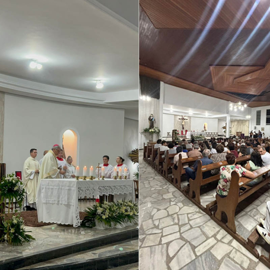 A solene Celebração Eucarística foi presidida por Dom Adilson Pedro Busin, reunindo centenas de fiéis, lideranças religiosas e representantes das comunidades. O momento também marcou o início do ministério pastoral do Padre Matheus Scremin Magagnin como primeiro pároco da nova paróquia.