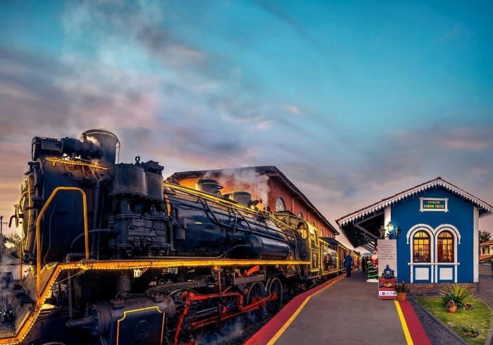 Os passeios acontecerão nos dias 03, 09, 10 e 18 de dezembro. Foto: Divulgação Faltando um pouco mais de dois meses para as celebrações de fim de ano, o Museu Ferroviário de Tubarão (MFT) já divulgou as datas dos passeios natalinos de maria fumaça. Serão quatro datas de viagem na histórica locomotiva.