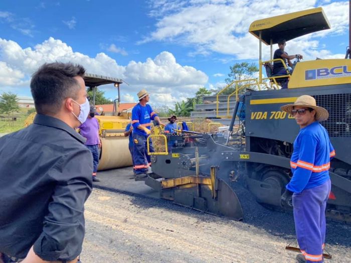 O prefeito Beto, acompanhou de perto os detalhes do trabalho para conclusão do pavimento.