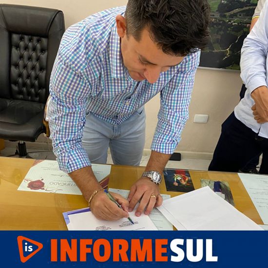 Beto aproveitou para garantir mais R$ 500 mil para a continuidade da pavimentação. Foto: PMBN Está autorizado o início das obras de pavimentação do Rio Cachoeirinhas, em Braço do Norte. A assinatura da ordem de serviço aconteceu no gabinete da Prefeitura, na tarde desta quarta-feira, 11, com a presença de representantes da comunidade e autoridades.