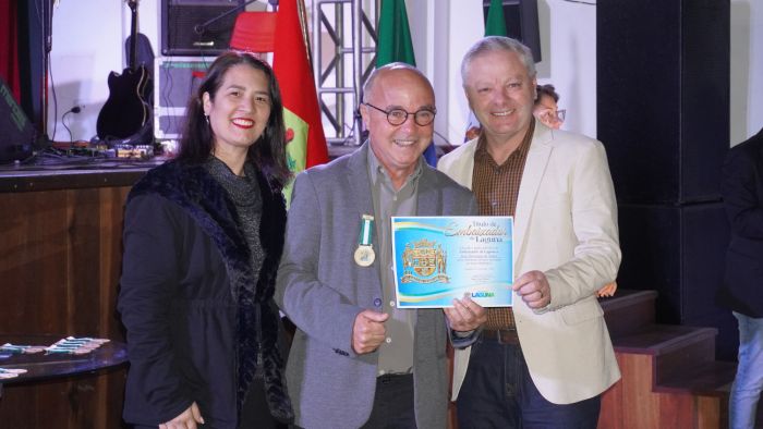 O professor José Henrique de Souza foi um dos homenageados. Foto: PML Após uma semana repleta de apresentações, danças, músicas, teatro, exposições, artes visuais, oficinas e artesanatos, a 40ª Semana Cultural de Laguna chegou ao fim neste domingo (31). A cerimônia de encerramento foi marcada pela entrega de medalhas e certificados do Título de Embaixador.