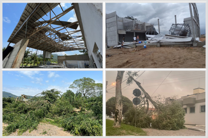 Na localidade de Bom Pastor, em Tubarão, moradores registraram danos significativos, incluindo telhas metálicas retorcidas e a queda de árvores e galhos. A Defesa Civil, com base em dados da estação meteorológica local, imagens de radar e relatos da população, investiga a possibilidade de um tornado de curta duração ter atingido a região entre as 15h30min e 16h30min.