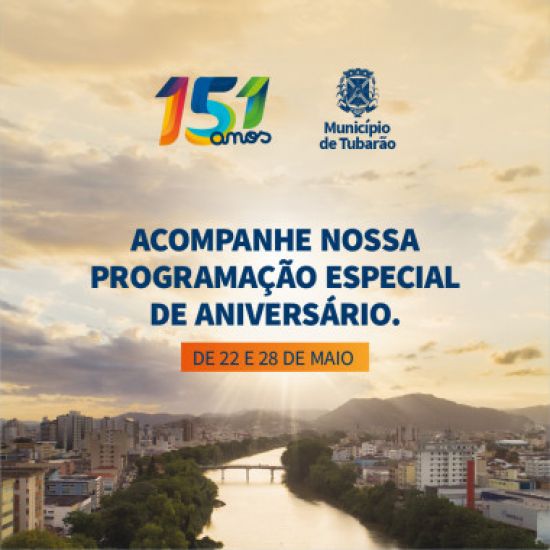 “Ainda não chegou o momento de voltarmos aos eventos que estávamos acostumados antes da pandemia e que o tubaronense tanto gosta, mas assim mesmo preparamos uma programação bastante especial à altura da importância desses 151 anos da nossa cidade”, destaca o prefeito Joares Ponticelli.