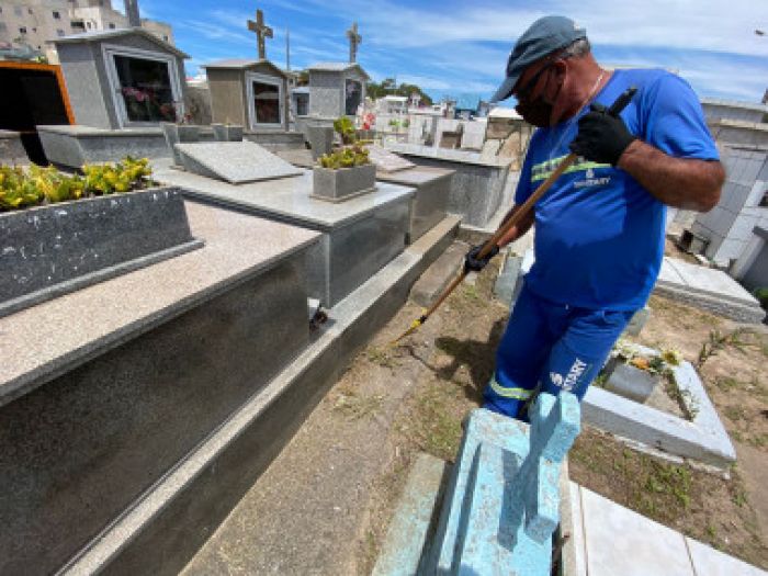 O trabalho foi realizado pelos colaboradores da Prefeitura de Imbituba. Foto: Israel Costa A Prefeitura de Imbituba, através da Secretaria de Infraestrutura (SEINFRA), e com o apoio do Serviço Público Funerário, está preparando os cemitérios do município para o Dia de Finados, que ocorre na próxima terça-feira, dia 2.