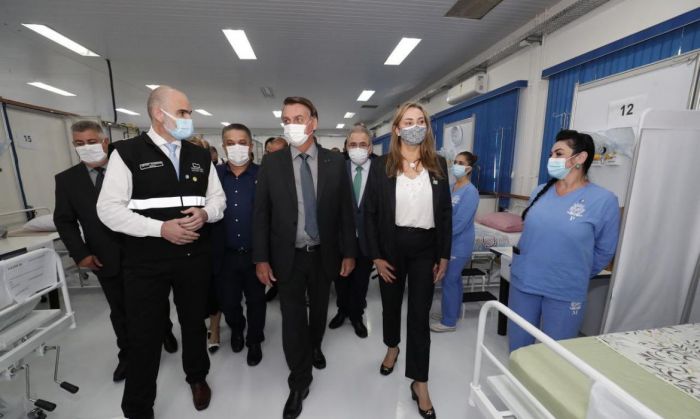 O presidente Jair Bolsonaro visitou hoje (7) o município de Chapecó. Foto: Agência Brasil O presidente Jair Bolsonaro visitou hoje (7) o município de Chapecó, na região oeste de Santa Catarina, para conhecer o Centro Avançado de Atendimento Covid-19. A unidade foi desativada após a alta e a transferência de pacientes para outros setores.
