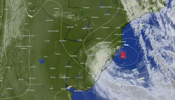 o ciclone se afasta para o alto mar favorece condição de tempo firme com presença de nuvens e nevoeiros nos amanheceres de Sábado (17) e domingo(18). – Foto: Meteorologista Piter Scheuer/Divulgação/ND