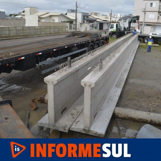 As duas vigas vieram da sede da empresa Traçado, vencedora do processo de licitação, em Erechim (RS), e foram descarregadas em um terreno no bairro Revoredo. As estruturas serão levadas ao canteiro de obras no momento de serem içadas sobre as colunas de apoio no Rio Tubarão, mesmo procedimento utilizado durante a construção da ponte Prefeito Paulo Osny May.