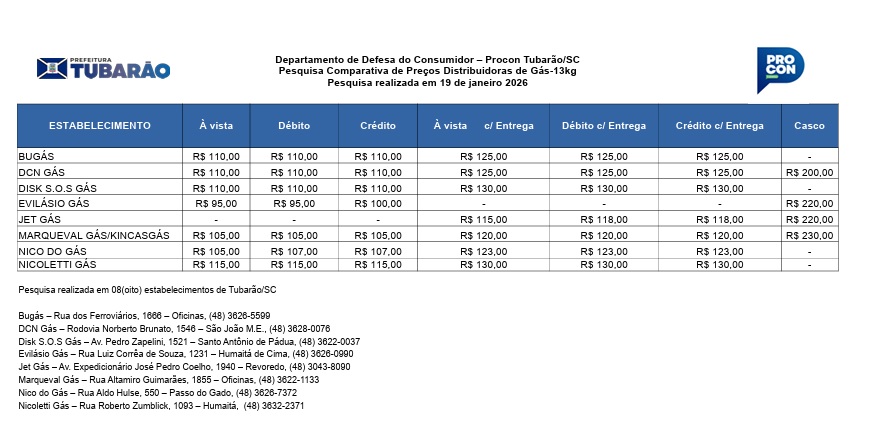 #ProconTubarão #GásDeCozinha #PesquisaDePreços #EconomiaDoméstica #GLP #DireitoDoConsumidor