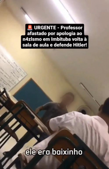 Um professor de história da rede pública de Santa Catarina, que já havia sido afastado do cargo por 60 dias após mensagens nazistas em um grupo no WhatsApp, retornou à sala de aula e se envolveu em mais uma polêmica. O episódio ocorreu em Imbituba, no Sul do Estado.