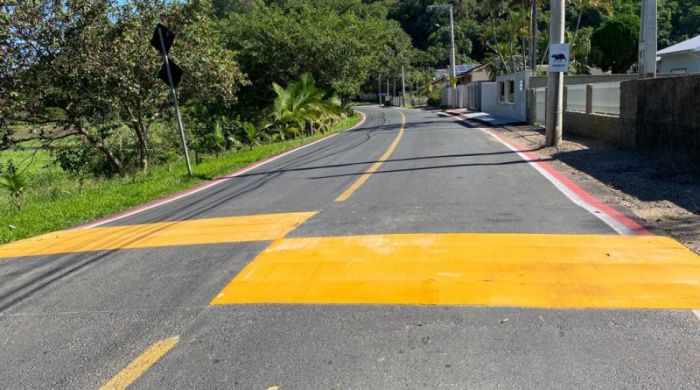 Revitalizada há algumas semanas, a rodovia Prefeito Genésio de Souza Goulart, a popular Estrada Geral da Madre ganhou nova sinalização horizontal