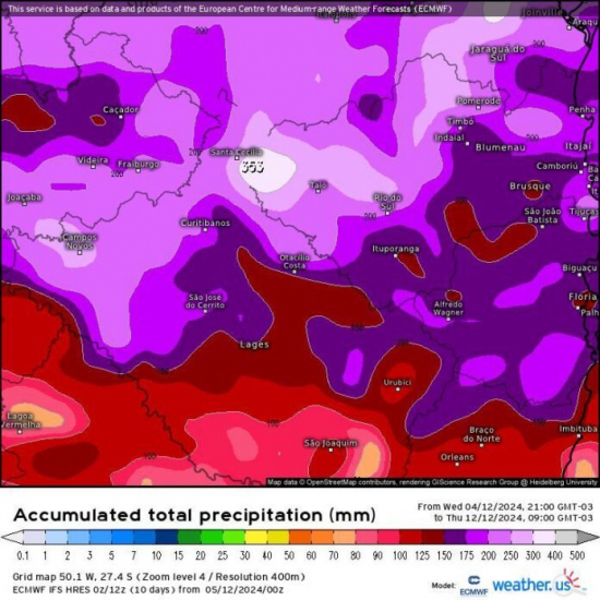 Entre domingo (8) e segunda-feira (9), o foco será nas regiões do Planalto Norte e Vale do Itajaí, que devem registrar os maiores volumes de chuva, elevando os níveis de rios e aumentando os riscos de inundações. Pequenos rios, como nas bacias do Peixe, Chapecó, Irani e Jacutinga, também poderão transbordar rapidamente no Oeste e Meio-Oeste.