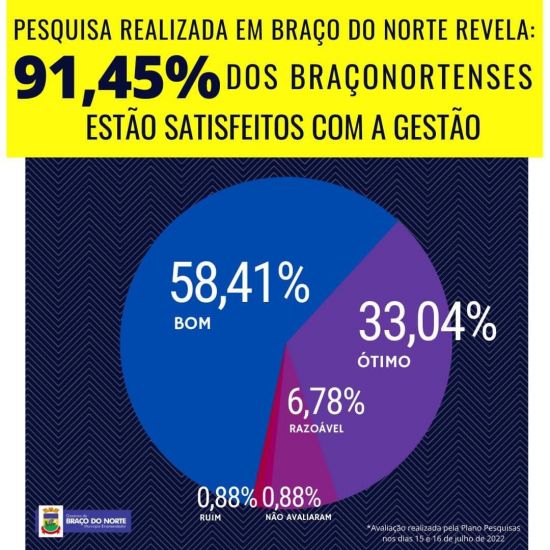 Periodicamente, a gestão municipal de Braço do Norte realiza pesquisas para saber qual o grau de satisfação dos munícipes. A última foi feita no mês de julho.