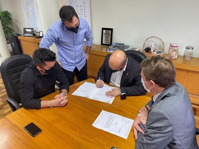 O secretário de infraestrutura do estado assinou o documento recebido pela duplicação. Foto: Divulgação O fluxo intenso da SC-370, entre Braço do Norte e Tubarão, já é mais do que conhecido. O trajeto, de cerca de 35 quilômetros, pode demorar até uma hora e meia para ser completado, dependendo do dia.