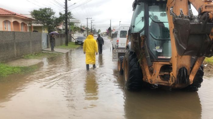 A conhecida vala que vai do Três de Maio ao bairro Santa Lúcia forma a principal via de escoamento de água da chuva na cidade e está sendo desobstruída às pressas. Ainda estão sendo desobstruídas bocas de lobo, valetas e a vala maior com uso de máquinas e mão de obra braçal adequadas para cada situação. Os pontos mais críticos estão nos bairros Três de Maio e Caçador, na região do Loteamento Camila, onde se concentram desde manhã cedo.