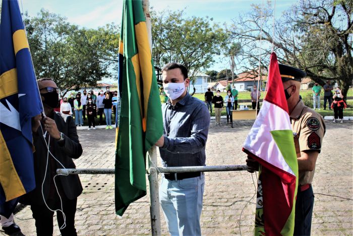 O prefeito Dr. Vicente Costa, acompanhado de outras autoridades, como a vice-prefeita Márcia Roberg Cargnin, fez o hasteamento da bandeira do Brasil. O presidente da Câmara de Vereadores, Wanei Fernandes, hasteou a bandeira da cidade, enquanto o primeiro-sargento Auri Geovane Nascimento, do Corpo de Bombeiros, ficou responsável em hastear a de Santa Catarina.