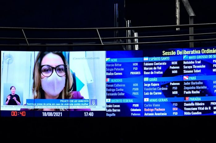 Leila Barros foi a relatora da matéria, que agora segue para a Câmara dos Deputados. Foto: Waldemir Barreto/Agência Senado O Senado aprovou nesta quarta-feira (18), por unanimidade, projeto de lei que proíbe a aquisição de arma de fogo por quem praticar violência contra mulher, idoso ou criança (PL 1.419/2019). A proposta também determina perda da validade dos registros de armas já existentes em nome do agressor. Além disso, prevê a apreensão imediata de armas de fogo na posse do agressor, mesmo que não tenham sido usadas na agressão. O texto, que altera o Estatuto do Desarmamento (Lei nº 10.826, de 2003), segue para a Câmara dos Deputados.