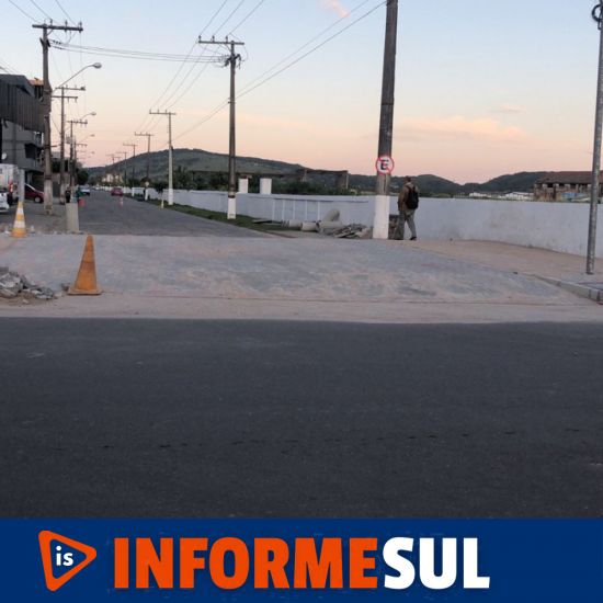 A ação é necessária para a continuidade do asfaltamento do anel viário (sistema binário), que ligará o Mar Grosso ao Centro Histórico. Foto: PML Foi liberado nesta quarta-feira (11) o acesso de veículos para a Rua Aderson Pinho Remor, que liga o Mar Grosso aos Molhes. A liberação ainda é de forma provisória, pois ainda será "elevado todo o meio da pista e o outro lado da calçada, mas a empresa está aguardando a finalização do trabalho da Casan na rede de água para terminar essa parte elevada do cruzamento", explicou responsável técnica pela obra, Gabriela Belmiro. A via estava fechada para veículos enquanto parte da elevação estava sendo executada.