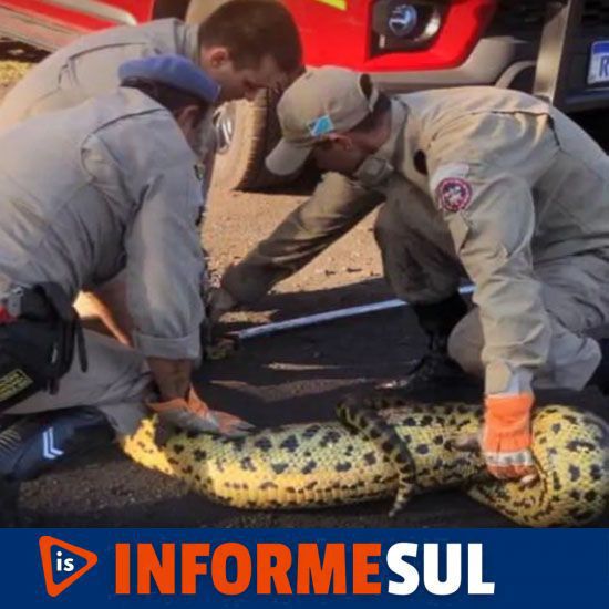 Uma sucuri, com cerca de 4 metros, foi capturada na manhã deste sábado (30), pelo Corpo de Bombeiros, na área de uma empresa siderúrgica, em Corumbá, na região do Pantanal sul-mato-grossense, após devorar um cachorro que estava no local.