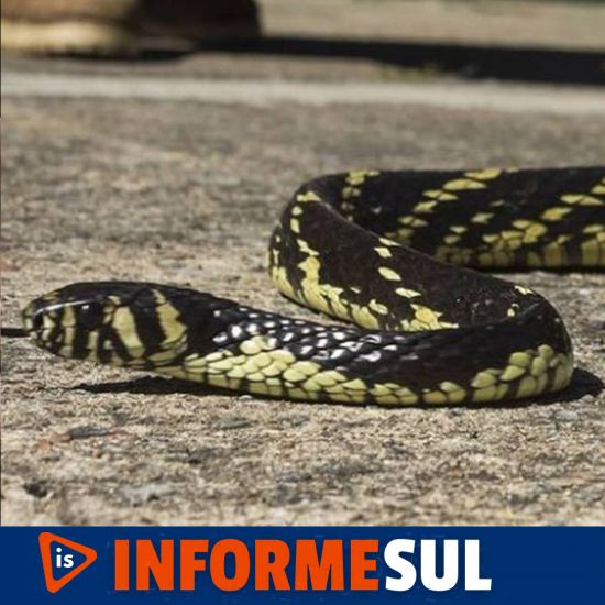 A cobra é da espécie caninana (Spilotes pullatus), que não é venenosa. Foto: Divulgação Uma família foi surpreendida no início da manhã por uma cobra que entrou na cozinha da casa e foi encontrada atrás da pia na hora de preparar o café da manhã. O caso ocorreu em Jaraguá do Sul, no Norte catarinense. Um dos moradores conseguiu guiar o animal para fora. Ninguém ficou ferido.