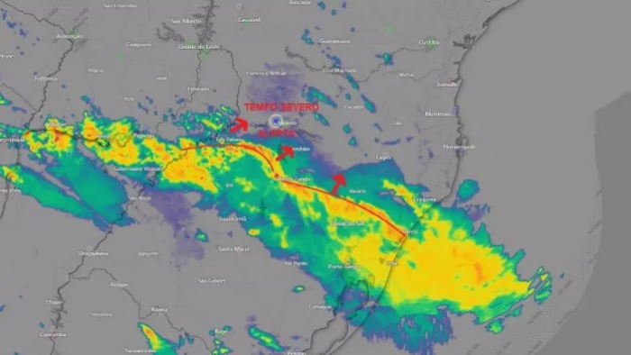 Segundo Piter, essa "poderosa linha de instabilidade pode resultar em tempestades severas, acompanhadas por chuvas torrenciais, granizo, descargas elétricas e ventos fortes".