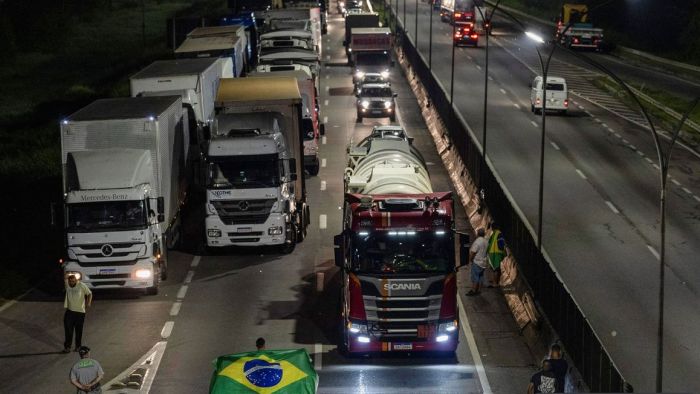 A Polícia Rodoviária Federal (PRF) informou na noite de hoje (3), em suas redes sociais, que todas as rodovias federais estão livres de bloqueios. Ainda ocorrem interdições, que é quando o fluxo de veículos fica parcialmente impedido em 24 rodovias. No final da manhã de hoje, esse número era 73 locais, sendo 60 interdições e 13 bloqueios, que é quando o fluxo fica totalmente impedido.