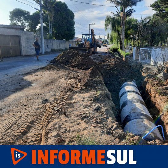 Para construir o novo sistema de drenagem pluvial foram necessários 60 tubos de concreto com 80 centímetros de diâmetro e outros 12 tubos de um metro de diâmetro.