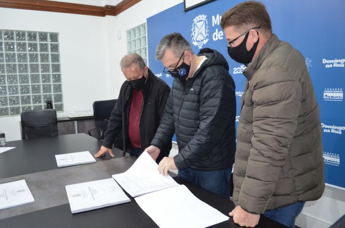O projeto foi entregue pelo diretor-executivo da Amurel, Celso Heidemann, ao prefeito Joares Ponticelli e ao vice-prefeito Caio Tokarski. Agora, o município apresentará o projeto ao Governo do Estado e pleiteará a ele a execução. No último mês, em Jaguaruna, o governador Carlos Moisés anunciou investimentos de R$ 12 milhões para Jaguaruna pavimentar a estrada até o limite com Tubarão.